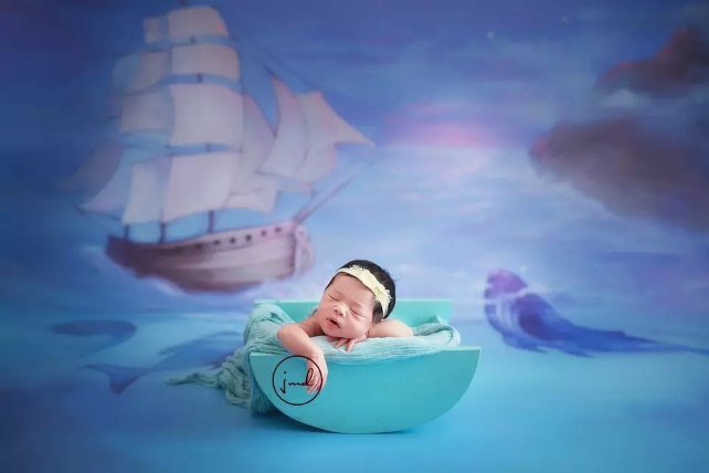Newborn photography photo Mermaid background full moon 100 days baby soft rubber foldable velvet props