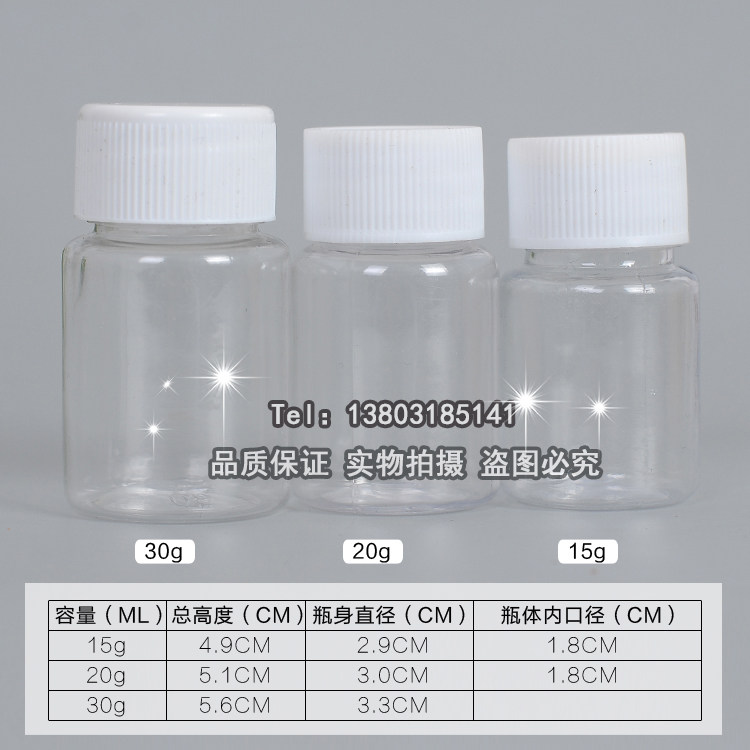 15ml gram 20ml gram 30ml gram plastic bottle transparent bottle PET bottle liquid bottle packaging capsule bottle solid sub-packaging