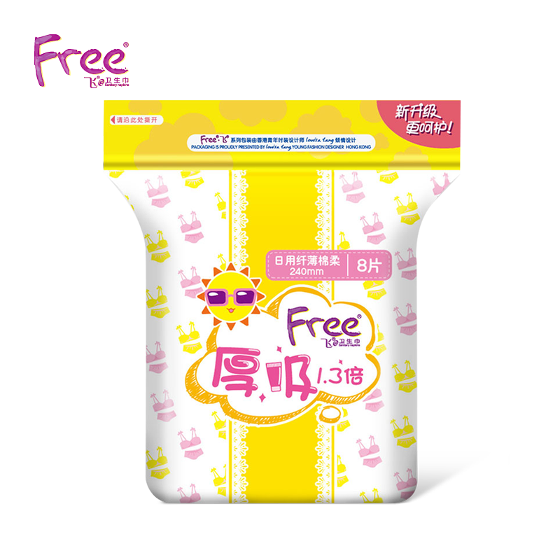 Free sanitary napkins slim daily fly thick suction 1 3 times cotton soft surface Girl series 8 pieces * 240mm T11-Taobao