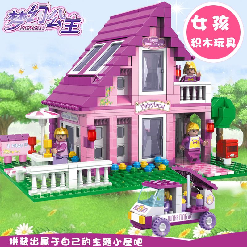 Osny Assembled Children Puzzle Pieces Plastic Building Blocks Dream Princess Castle Pink Little Ocean Room Girl Presents