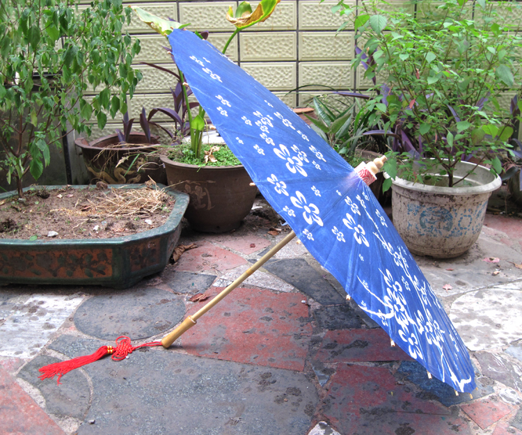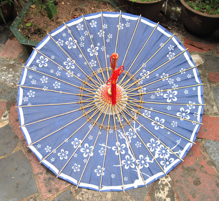 Oil-paper umbrella pure handmade classical rain-proof sunscreen traditional ancient tung oil umbrella practical costume umbrella (blue bottom plum)