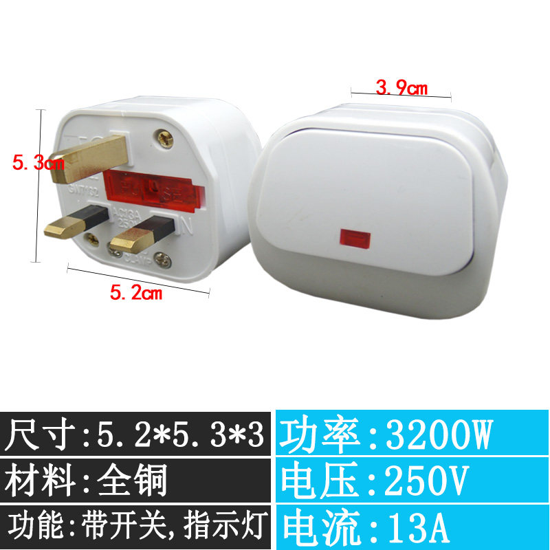British standard power plug British standard with switch insurance 13A British household Singapore Industrial three-pin wiring plug