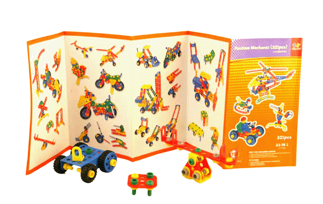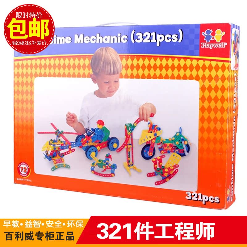 Assembled toy Budweiwei small engineer 321 pieces of plastic parquet and combined building block puzzle toy car