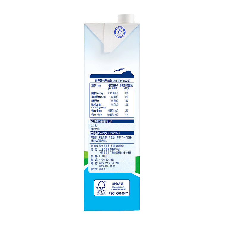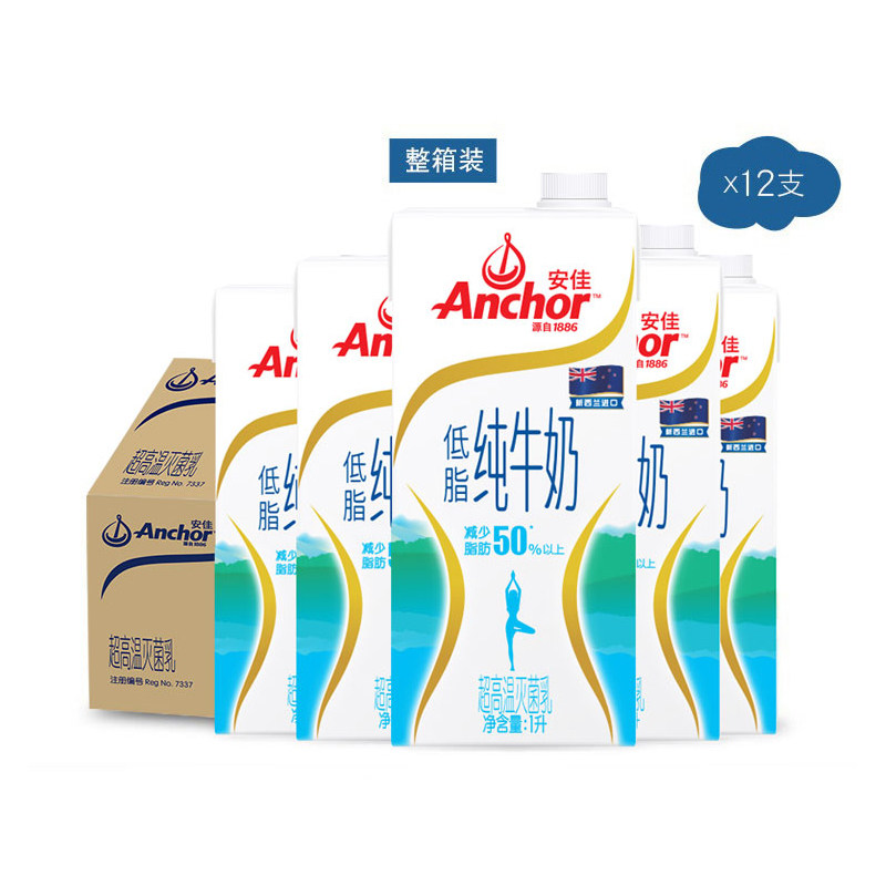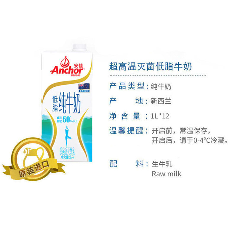 New Zealand imported milk whole box Anchor Breakfast low fat milk Pure milk 1L*12 boxes