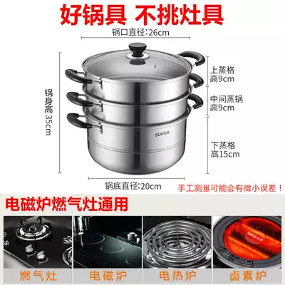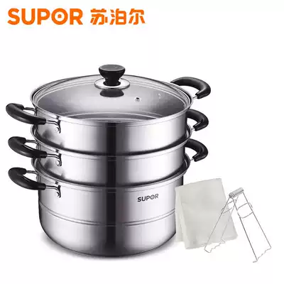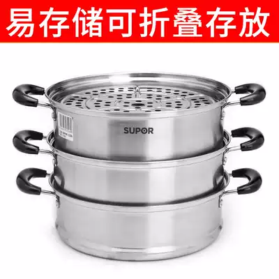 Supor 304 stainless steel three-layer composite bottom multi-layer steamer 26cm large capacity induction cooker gas universal
