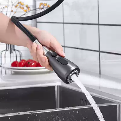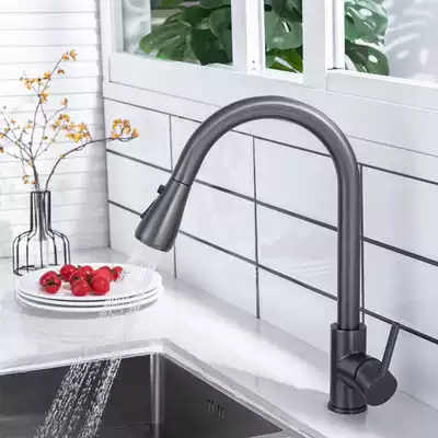 German LANCE all copper gun gray pull-out kitchen faucet hot and cold wash basin brushed black outlet shower