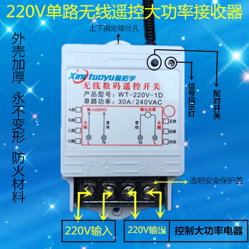 Star Tongyu AC 220V high power remote control switch 30A single - way wireless controller electric electric motor
