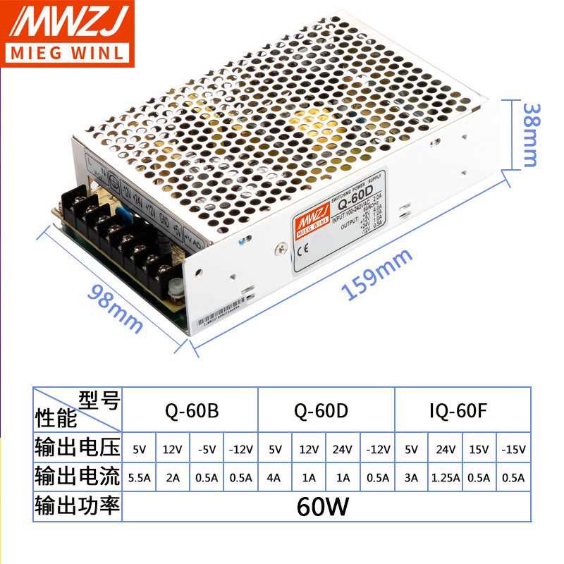 Q-60D 5V 12V 24V -12V -12V 5V 60WQ-60B 5V 12V -5V -12V -12V 60WIQ-60F 5V