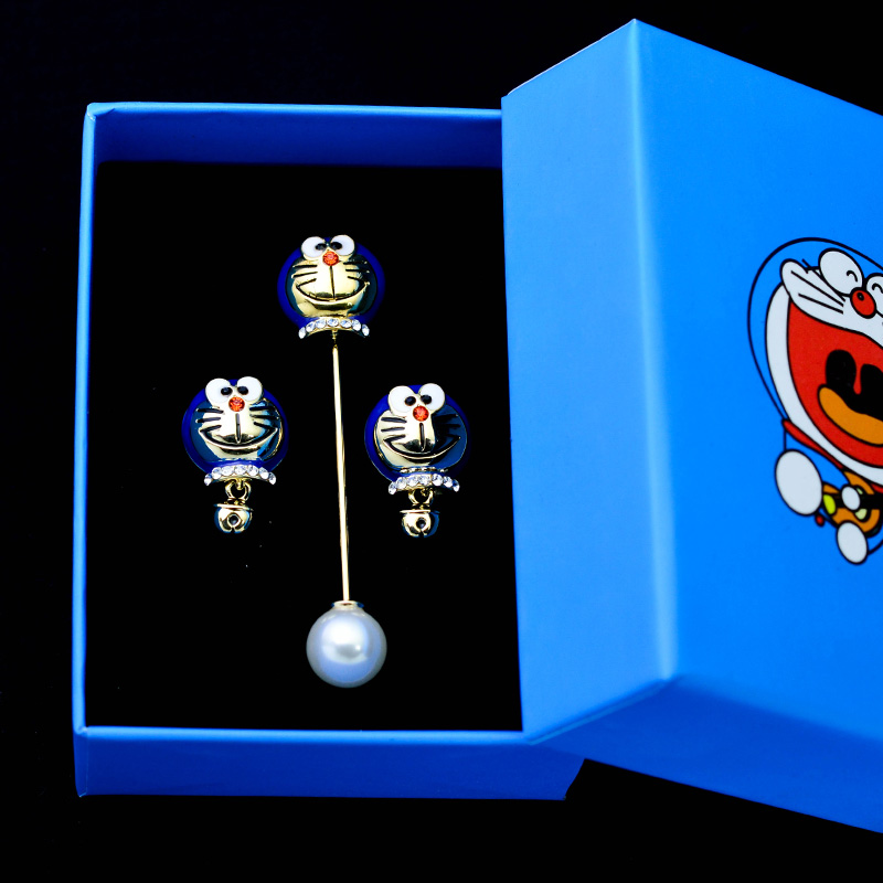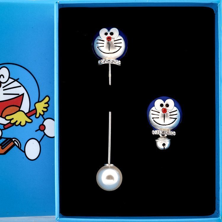 Doraemon cute cartoon long small brooch female Korean jewelry Shirt robot cat mini collar pin buckle pin accessories