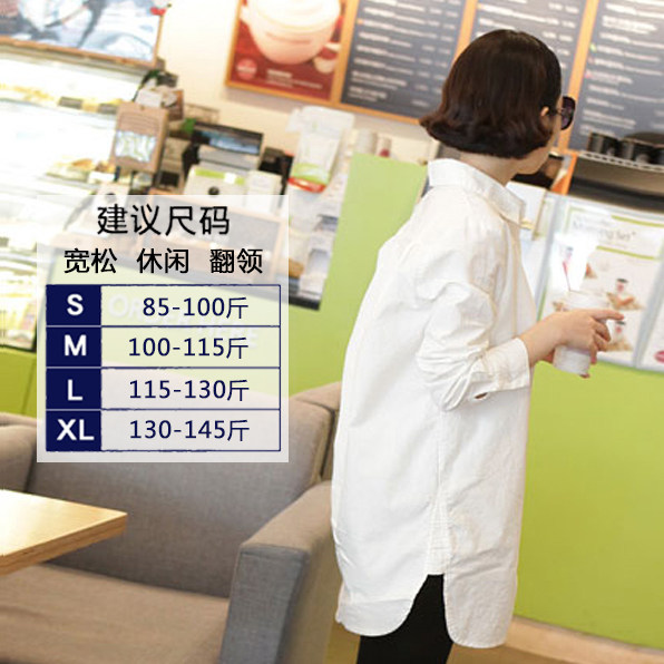 U home 2021chic spring and Autumn women's new white shirt Korean shirt long version loose casual long-sleeved top