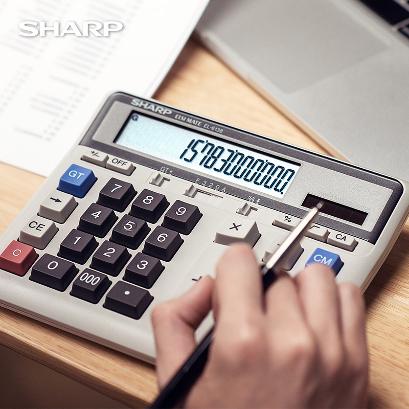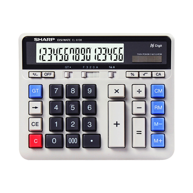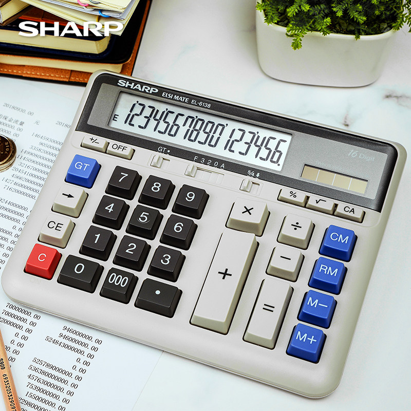 SHARP Sharp EL-6138 Computer Large Button Calculator BankIng Accounting 16-digit Solar Business Office Computer