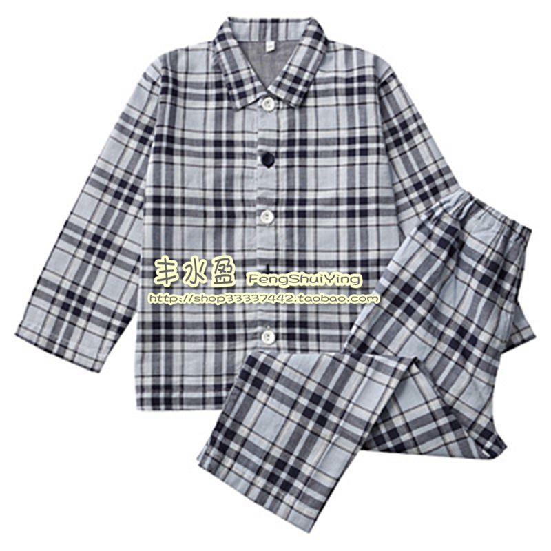 Day Single Pure Cotton Double Yarn Classic Plaid Long Sleeve Pants Children Suit Sleepwear Home RMB39