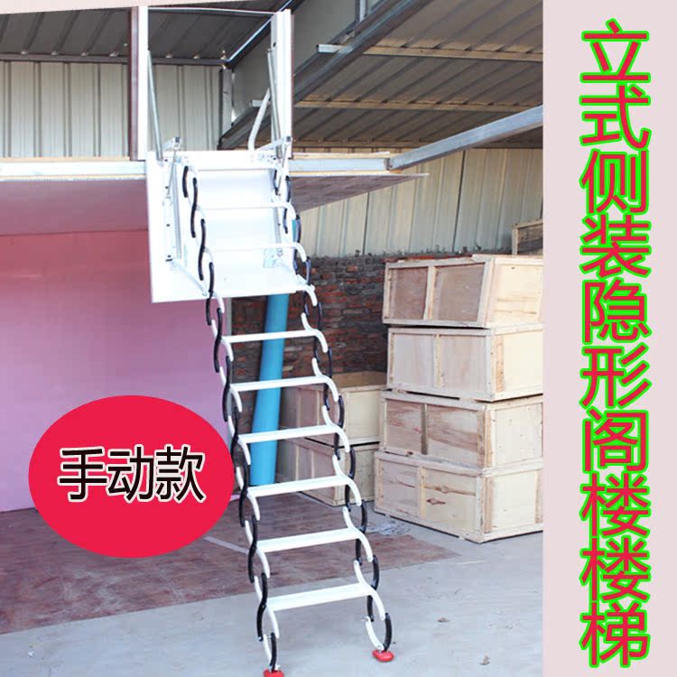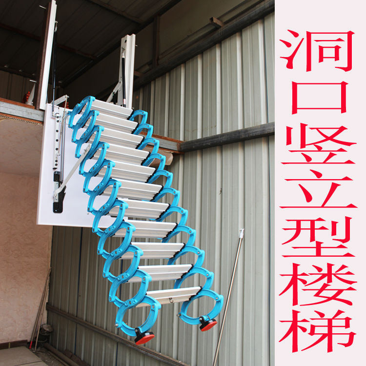 Shop platform Household vertical invisible attic Telescopic folding lifting stairs Steel titanium magnesium thickened extension ladder