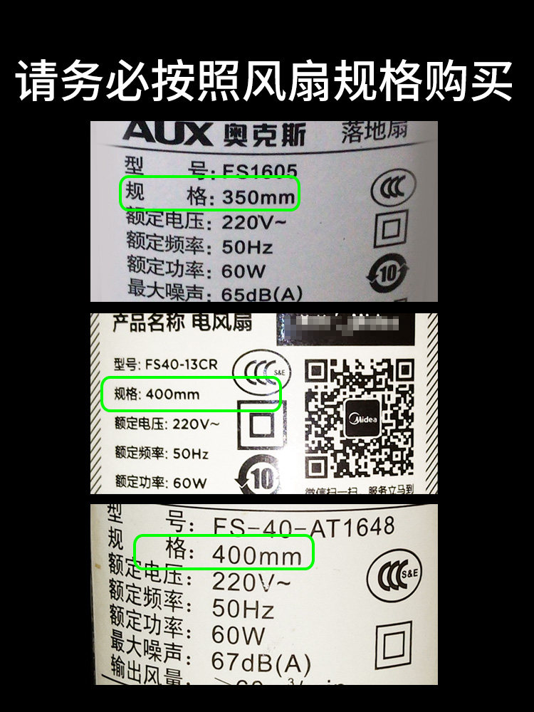 Fan specifications 300mm(12 inches)(white) Fan specifications 350mm(14 inches)(white)Fan specifications 400mm(16 inches) (white)Fan specifications 40