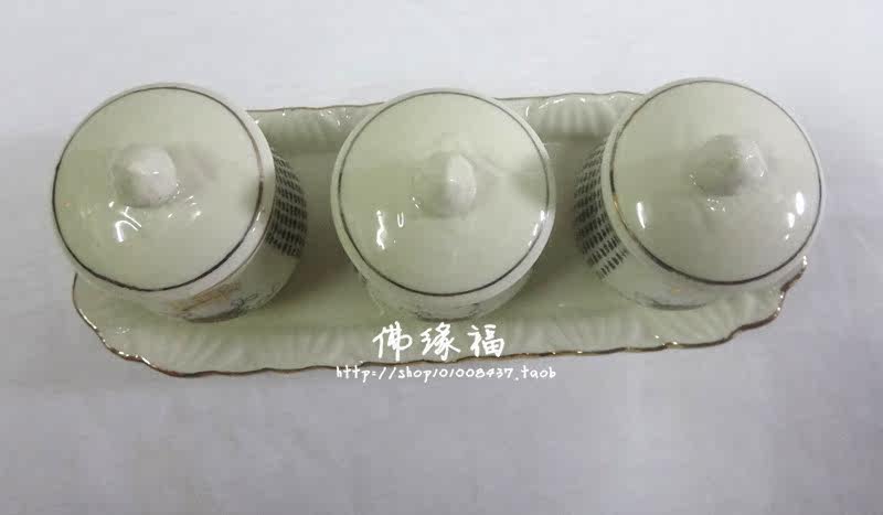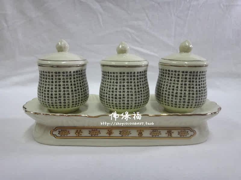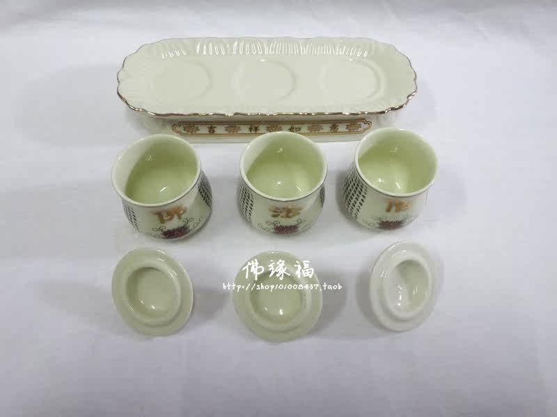 Ceramic Dharma Sacred Water Cup with three cups of water cup to paint gold purifier cup