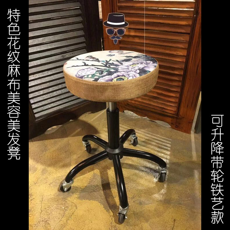 Beauty stool Hair stool Hair salon chair can be lifted and rotated 360 degrees Dark brown padded embedded universal wheel