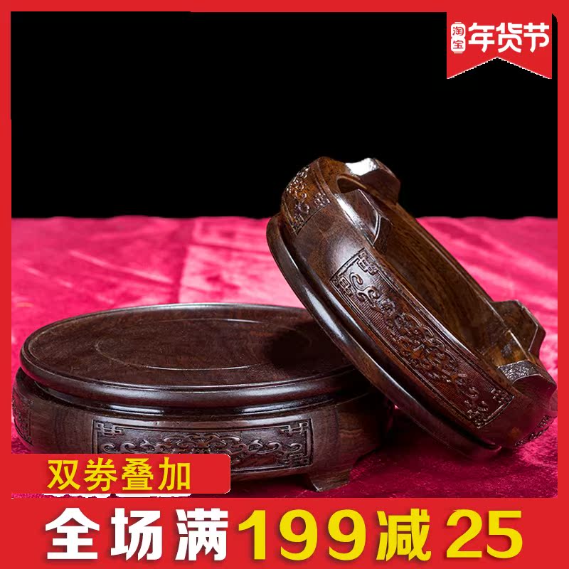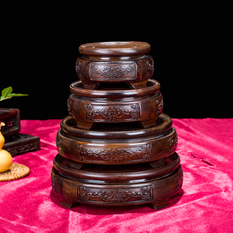 Vase flowerpot solid wood base fish tank tea set Buddha statue Master Cup craft gift gourd bronze ornament round wooden tray