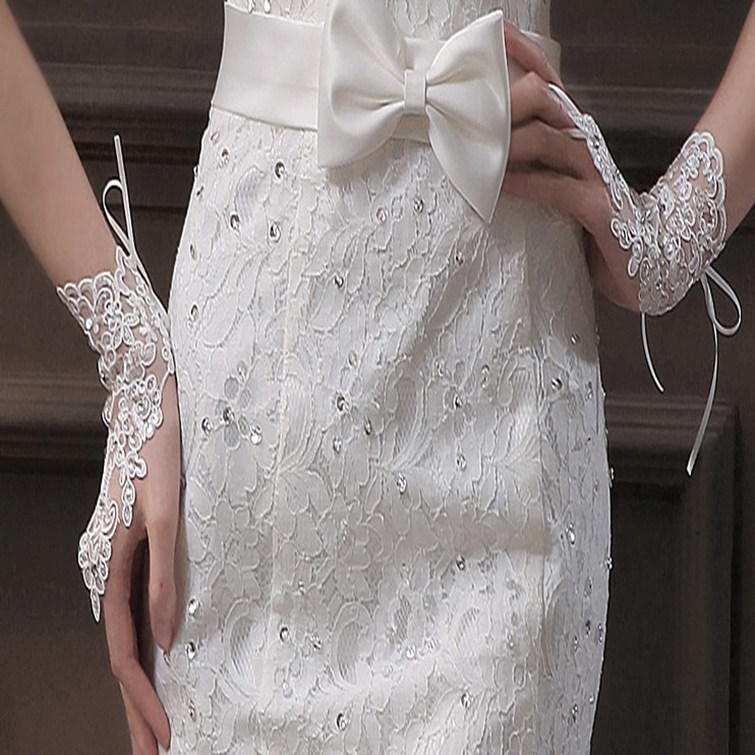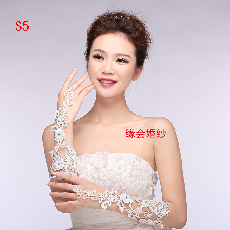 New hook finger short bright diamond gloves pure white milky red bride wedding dress wedding strap gloves