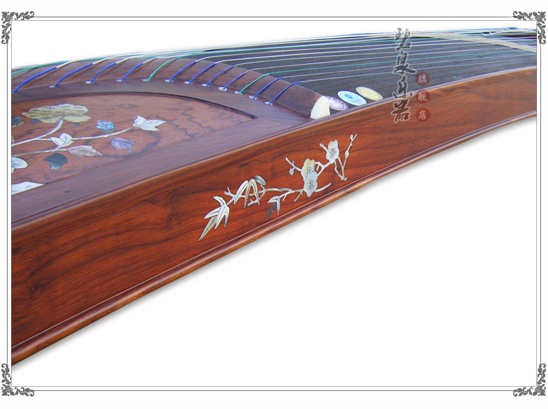 Bequan Guzheng Red Wood Excavation with Lateral Peacock C840-2 Professional Playing Musical Instrument