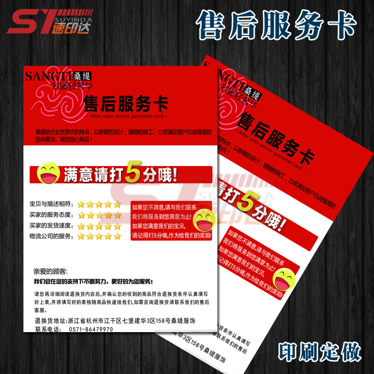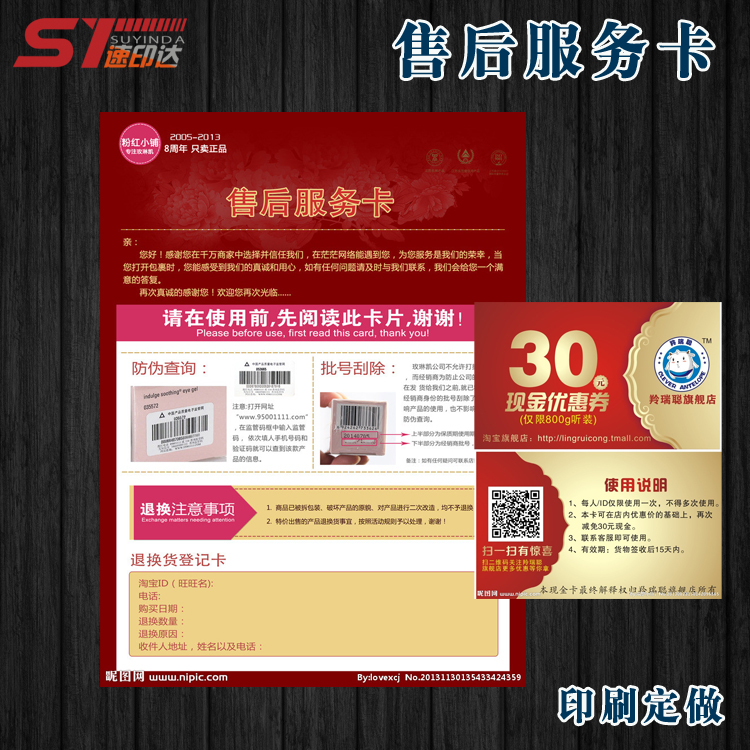 Tmall Taobao Thank you card Warranty card customized after-sales service card customized coupon voucher printing