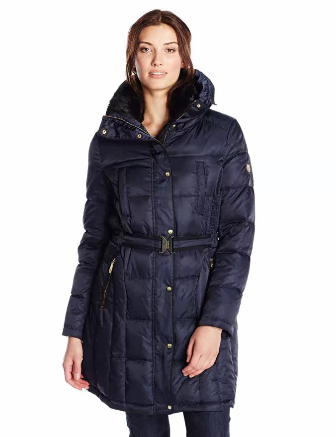 Vince Camuto women's mid-length hooded waterproof down jacket J8601 U.S. direct mail