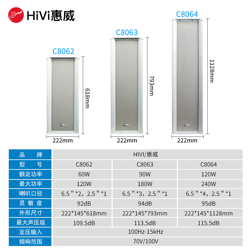 HIVI Huiwei C8062 wall-mounted sound outdoor waterproof sound column All aluminum alloy 60W 90W 120W