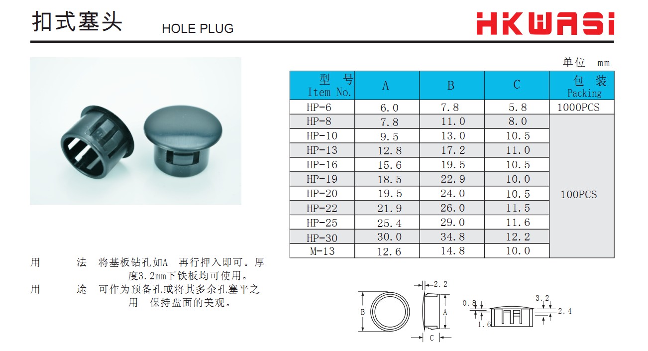 HP - 13 smelt steel plate hole cabinet drilling 13MM plastic hole cover