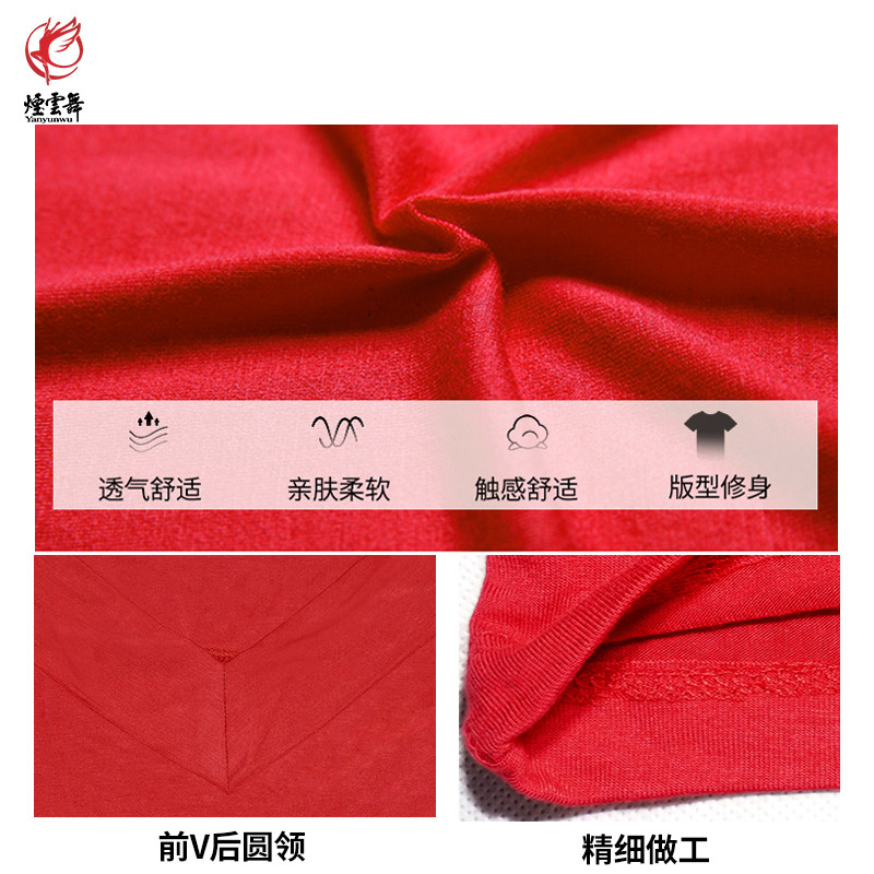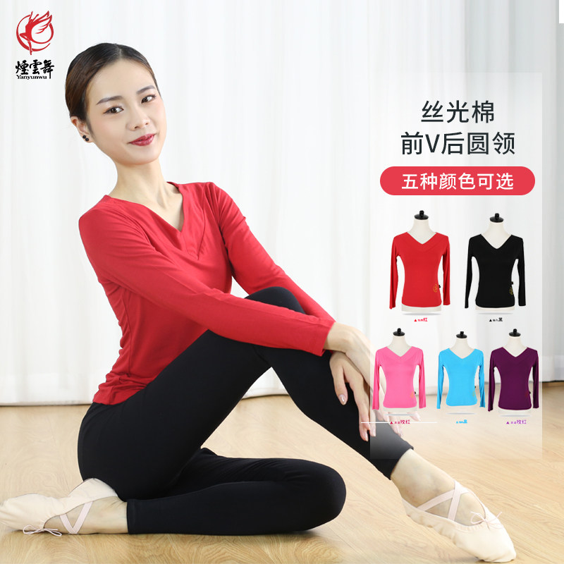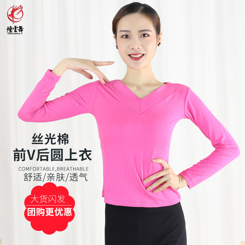 Red Dance Shoes Dance Rehearsals Women Long Sleeve Blouses Adult Front V Rear Round Neckline Dancing Clothes Square Dance Costumes Autumn