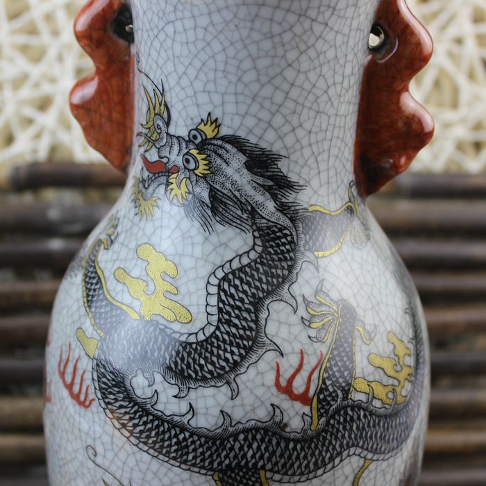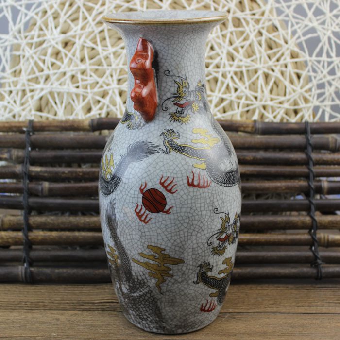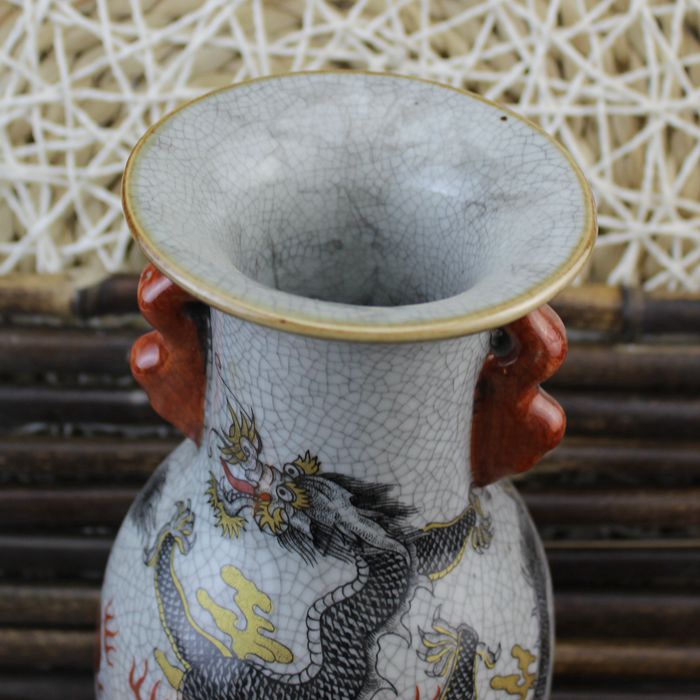 Ancient porcelain ceramic enamel colourful double dragon vase Jingde Zheng Antique porcelain bottle furnished