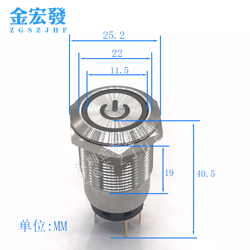 Jinhong 19MM metal illuminated button switch power supply symbol jog self-reset self-locking button J19-371-P