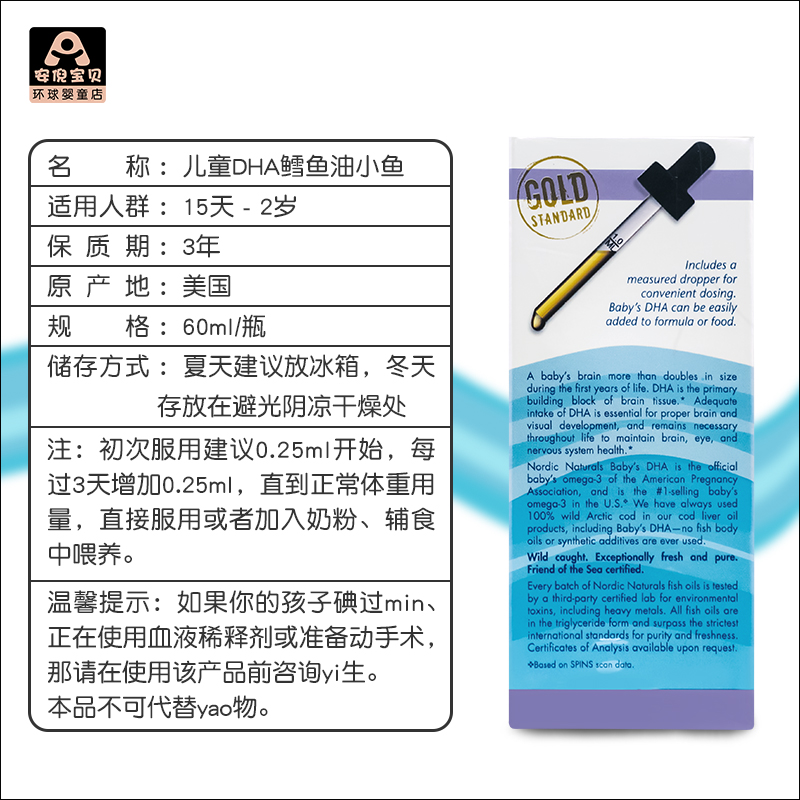 American imported Nordic Naturals Baby DHA Infant Norwegian Cod Oil 60ml