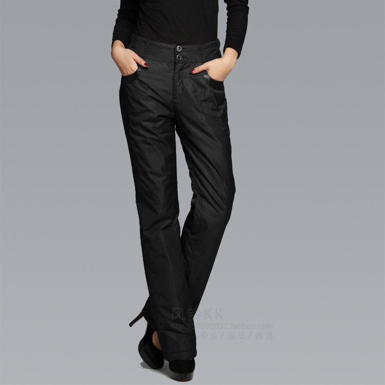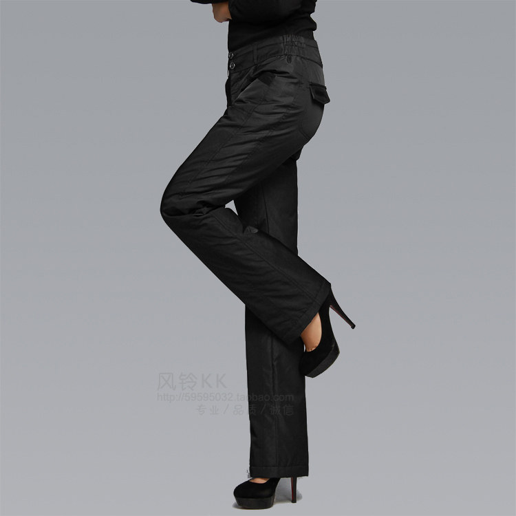Winter down pants woman outside wearing body thickened straight cylinder display slim double face down cotton trousers warm and cold proof duck suede long pants