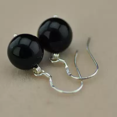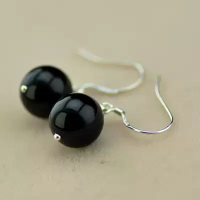 925 Sterling Silver Natural Black Agate Earrings Women's Vintage Original Ethnic Handmade Silver Festive Gift