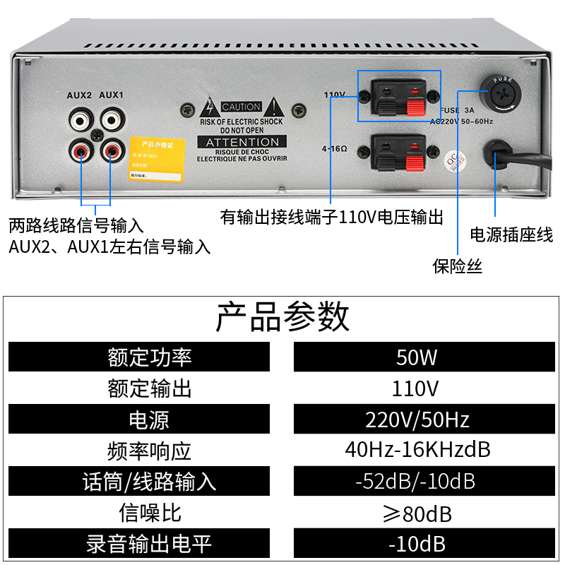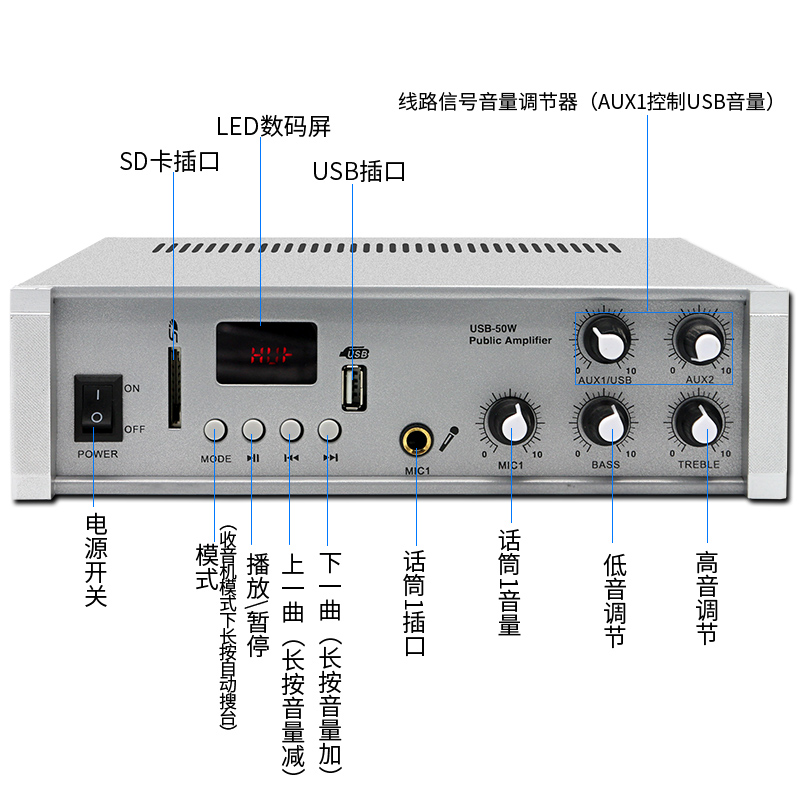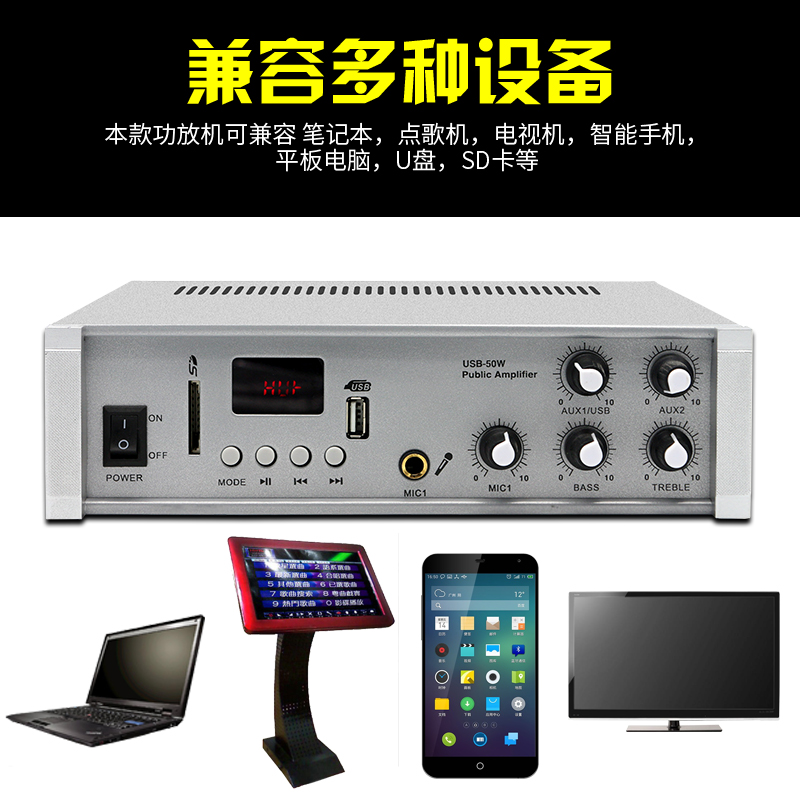 Constant pressure amplifier desktop shop commercial Bluetooth amplifier USB50W campus public broadcasting background music