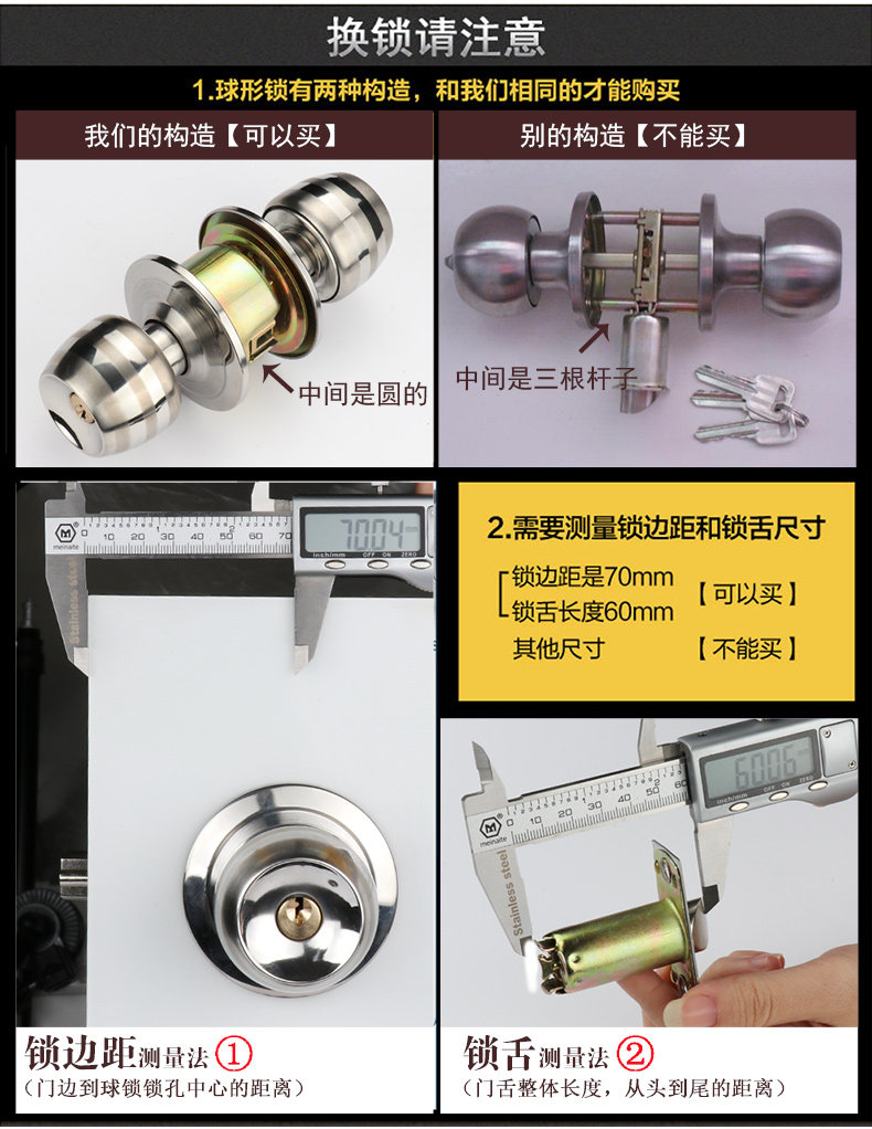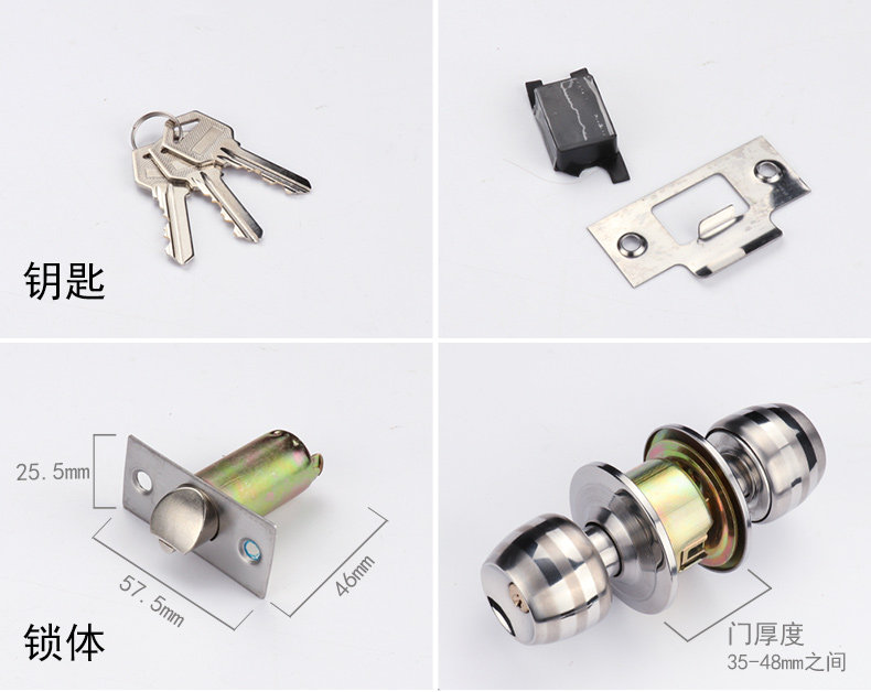 Runpeng ball lock indoor bedroom door lock stainless steel ball lock spherical door lock spherical lock pure copper lock cylinder