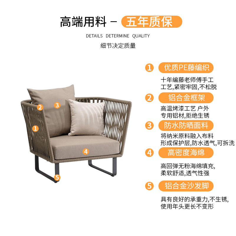 Outdoor sofa, rattan chair, terrace, garden, courtyard, balcony, waterproof and sunscreen leisure homestay hotel combination villa furniture