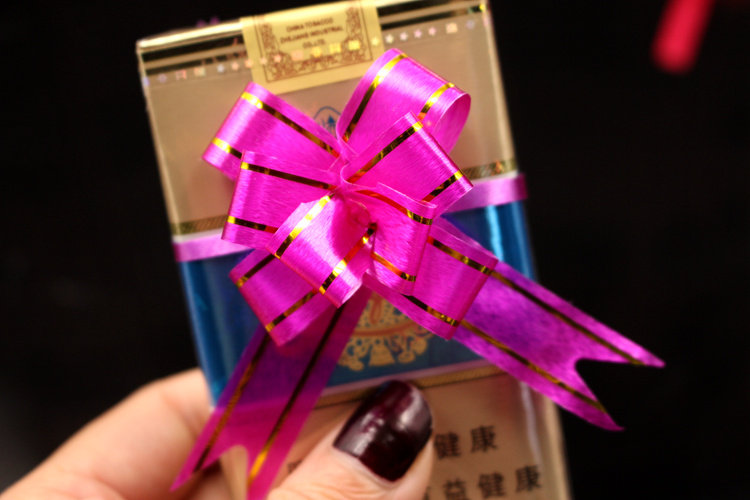 50-small red flowers (bundled 1-3 packs of cigarettes)50-medium red raffles (bundled 4-8 packs of cigarettes)