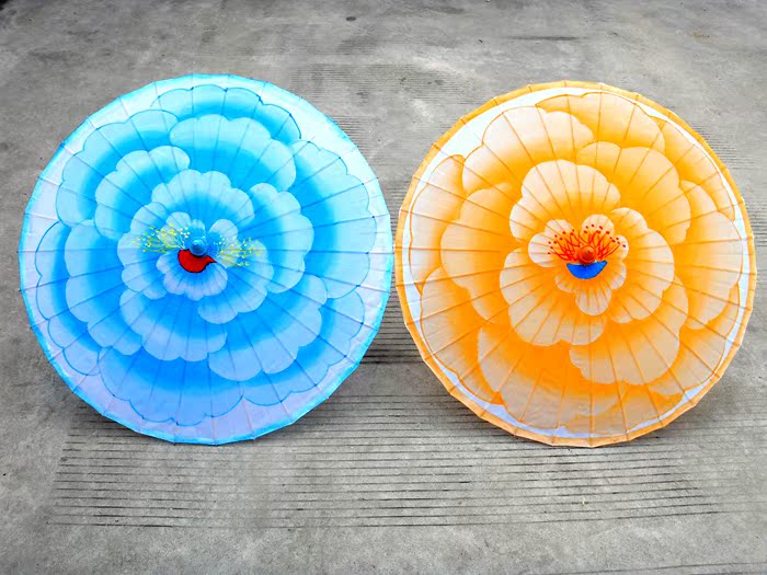 Hand-painted big red peony silk umbrella Hand-painted rose red peony silk umbrella Hand-painted sky blue peony silk umbrella Hand-painted golden peony silk umbrella
