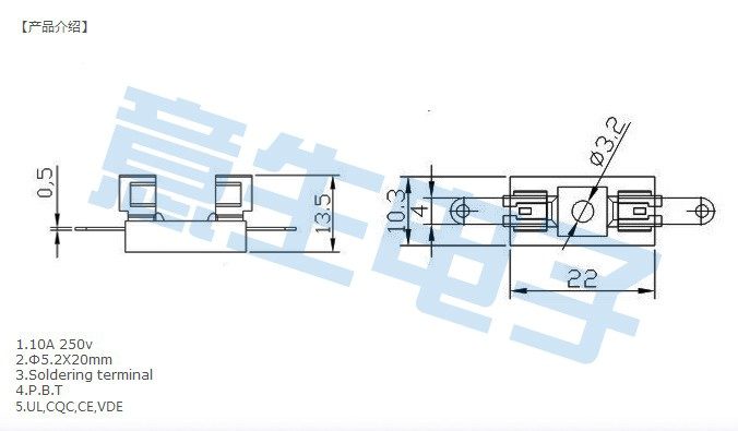 H3-10A PTF-10 fuse seat 10A250V fuse seat 5*20mm insurance tube seat Panel Ang