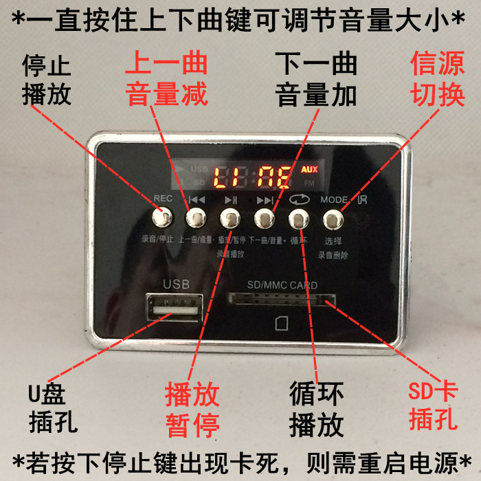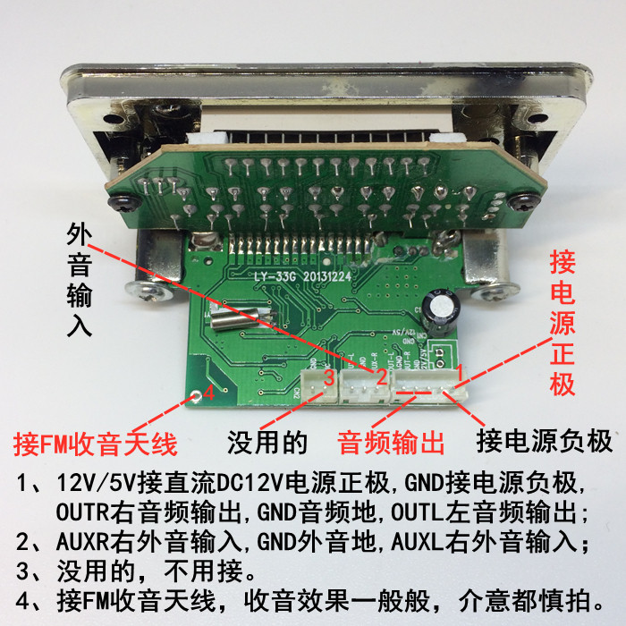 LY33 LY33 square MP3 decoding board WAV player 5V audio card reading board 12V display memory radio AUX