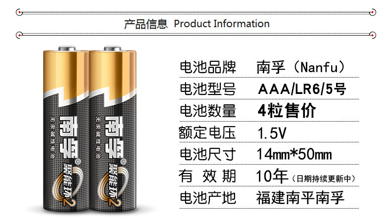Original Nanfu No. 5 battery, 5# battery, Nanfu mercury-free battery, anti-counterfeiting new packaging, energy-concentrating ring 3 generation