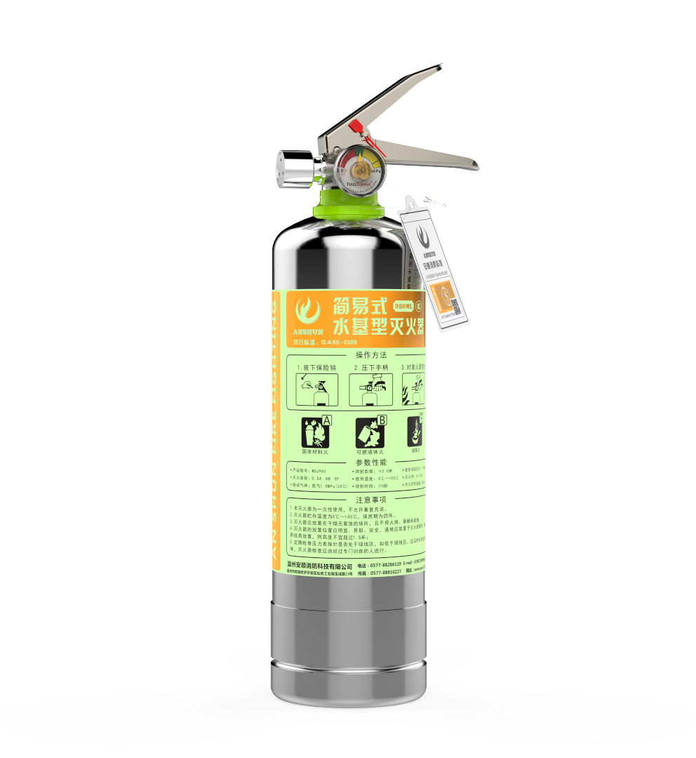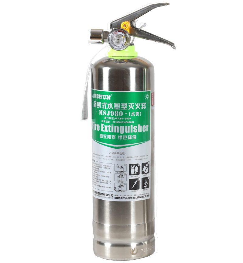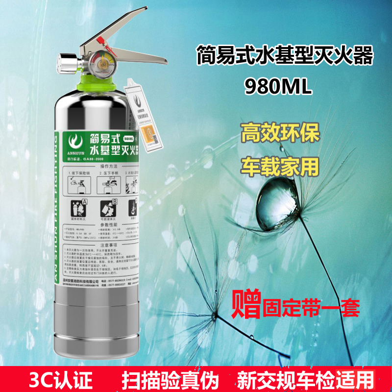 Anshun stainless steel high-efficiency flame retardant water-based fire extinguishers for vehicles for household environmental protection fire extinguishers vehicle 3C certification