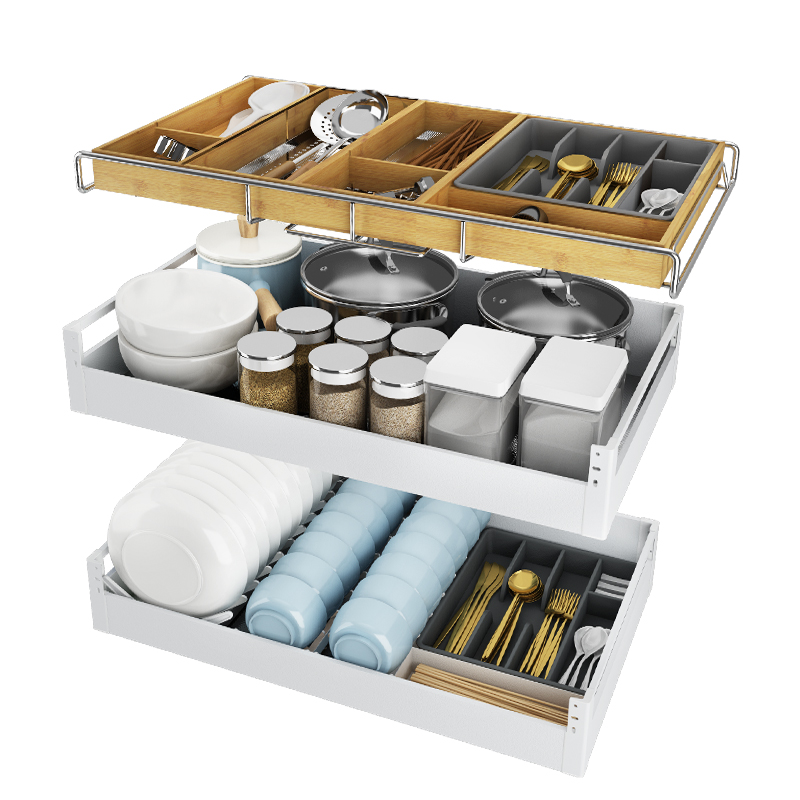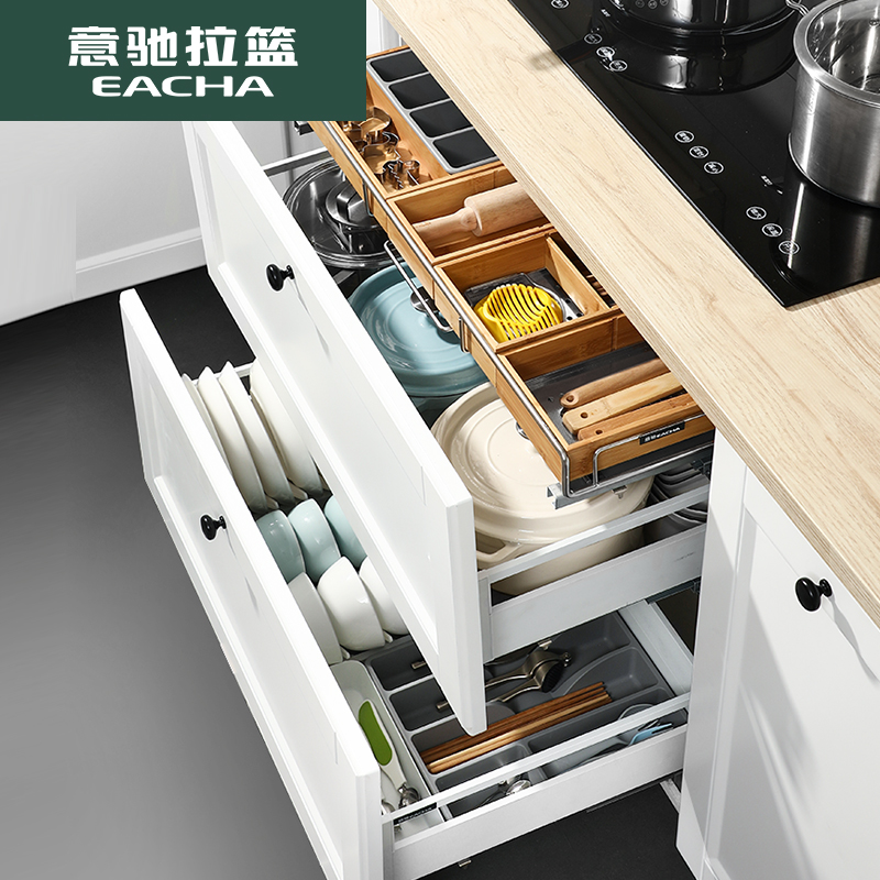 Yichi 304 stainless steel kitchen cabinet inside bowl rack tableware storage rack double drawer dish basket