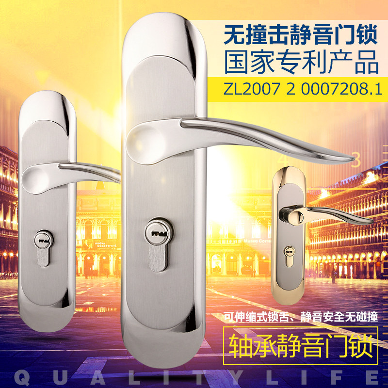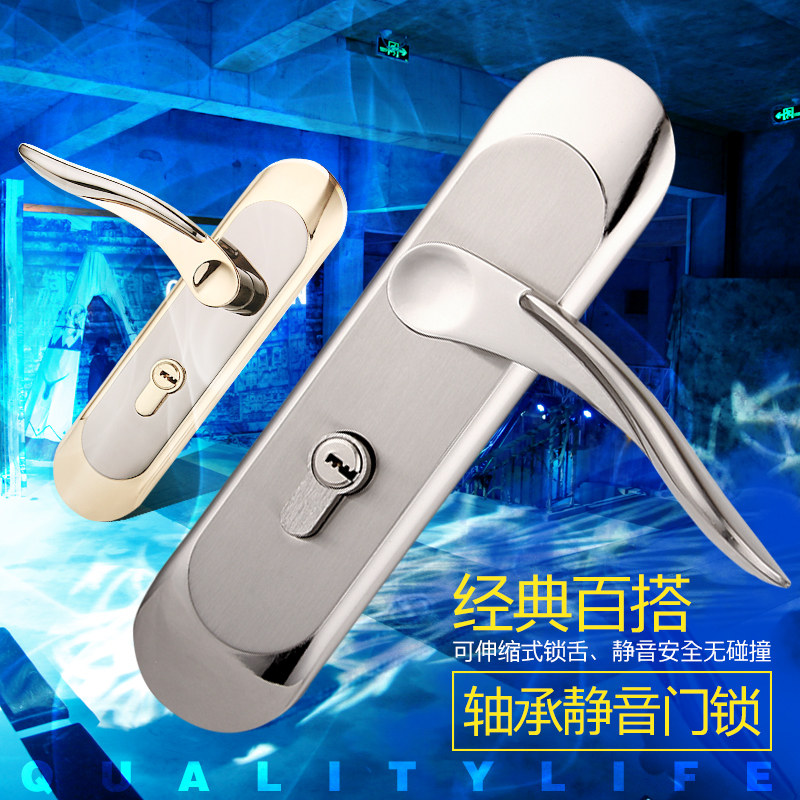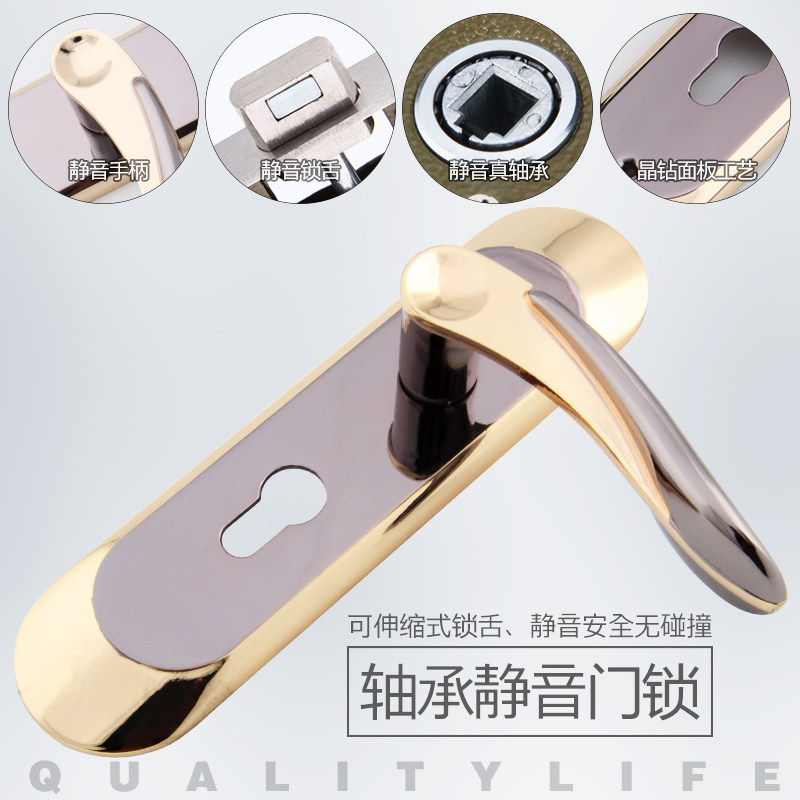 Bijia silent bearing double tongue door lock European indoor door lock Solid wood bedroom steel wood door anti-collision plate hand lock