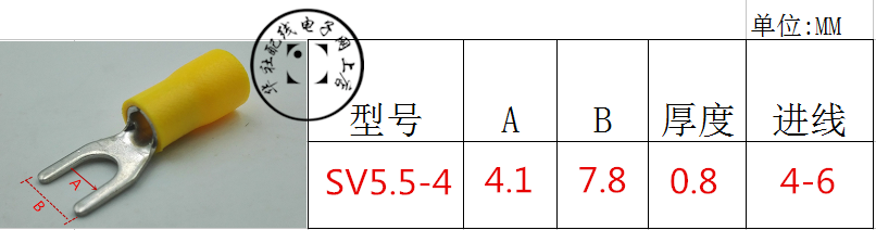 Promotion SV5 5-4S Cold pressed wiring terminal plug-in type U-type insulated terminal fork wire ear post head 0 8 thick