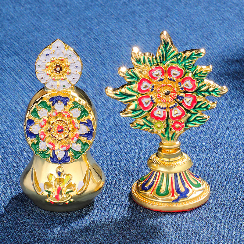 Tibetan ethnic supplies, tantra supplies, gold-plated painted eight offerings, Doma food, butter flower, gift box, height 8cm