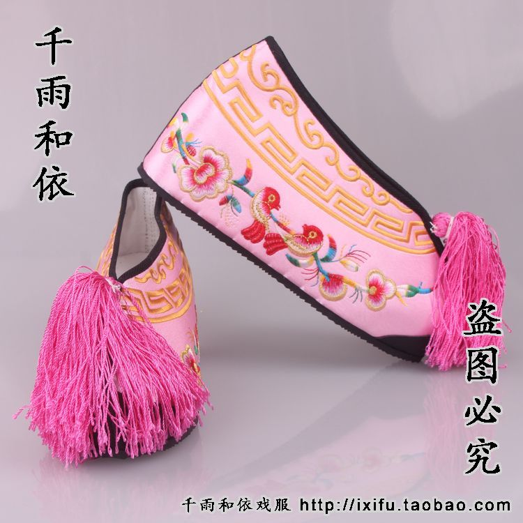 Ancient Clothing Shoes Children inside Heightening Flowers Denier Embroidered Shoes Opera Shoes Color Shoes Ancient Female High Heels New Play
