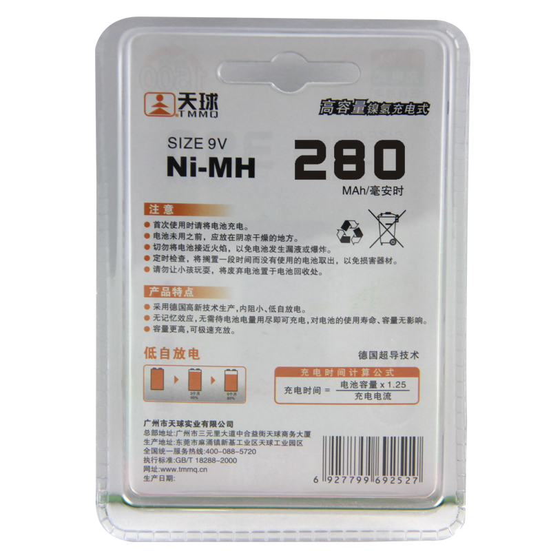 TMMQ Ni-MH rechargeable battery 9V microphone camera toy 280mAh charge durable