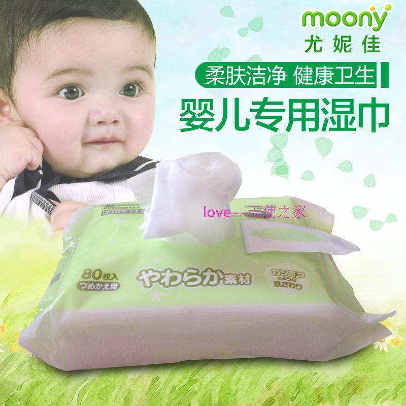 Spot Japanese native Unicharm wet wipes 80 pieces Moony baby wipes soft skin care non-irritating soft wipes
