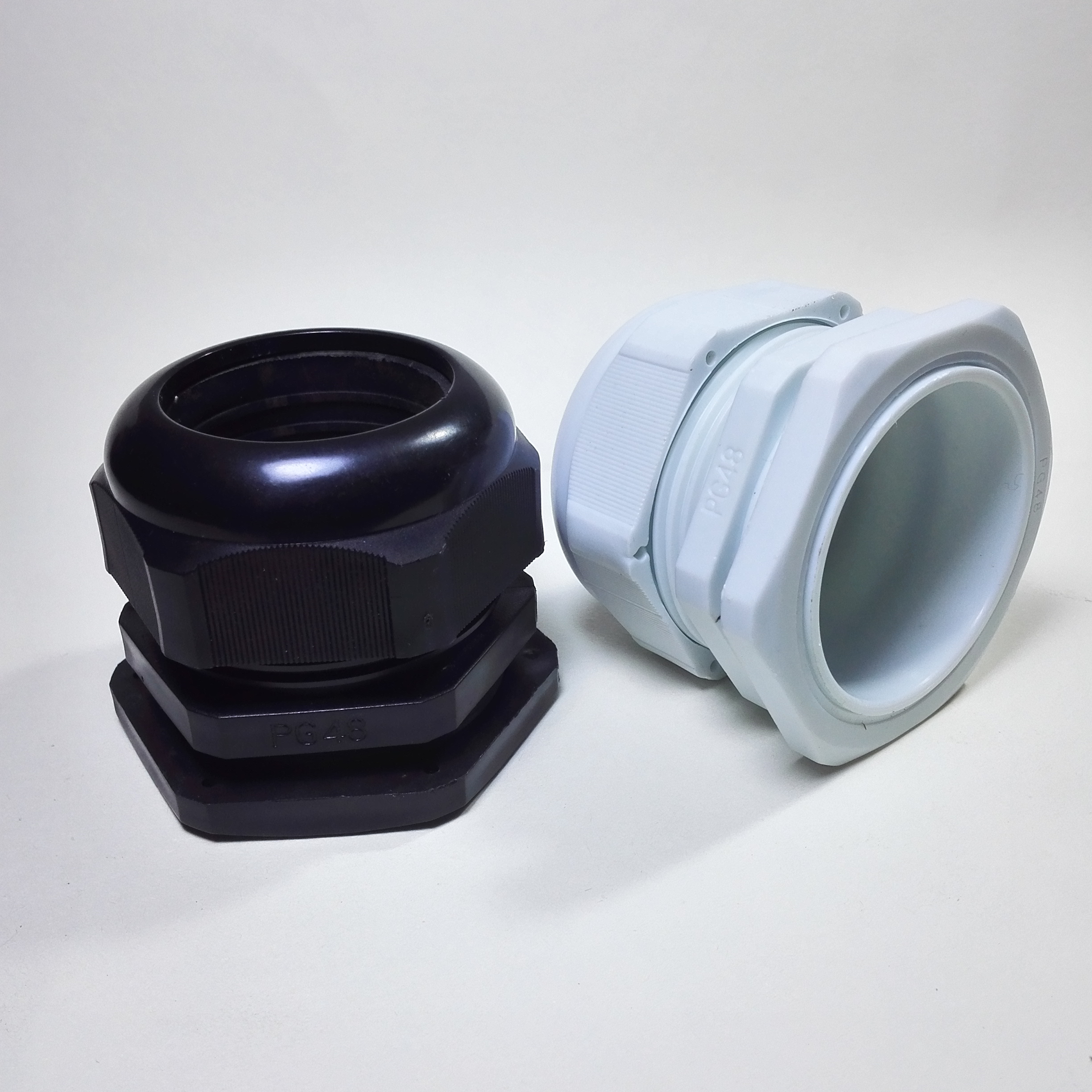 Hot selling PG48 plastic cable wire waterproof connector nylon chassis fixed head opening 60 Glen head bellows